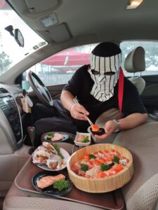 その「Daiso Sushi」のチェンマイ支店が、店内食事制限の影響を受けてドライブインビュッフェというプロモーションを始めたそうです。