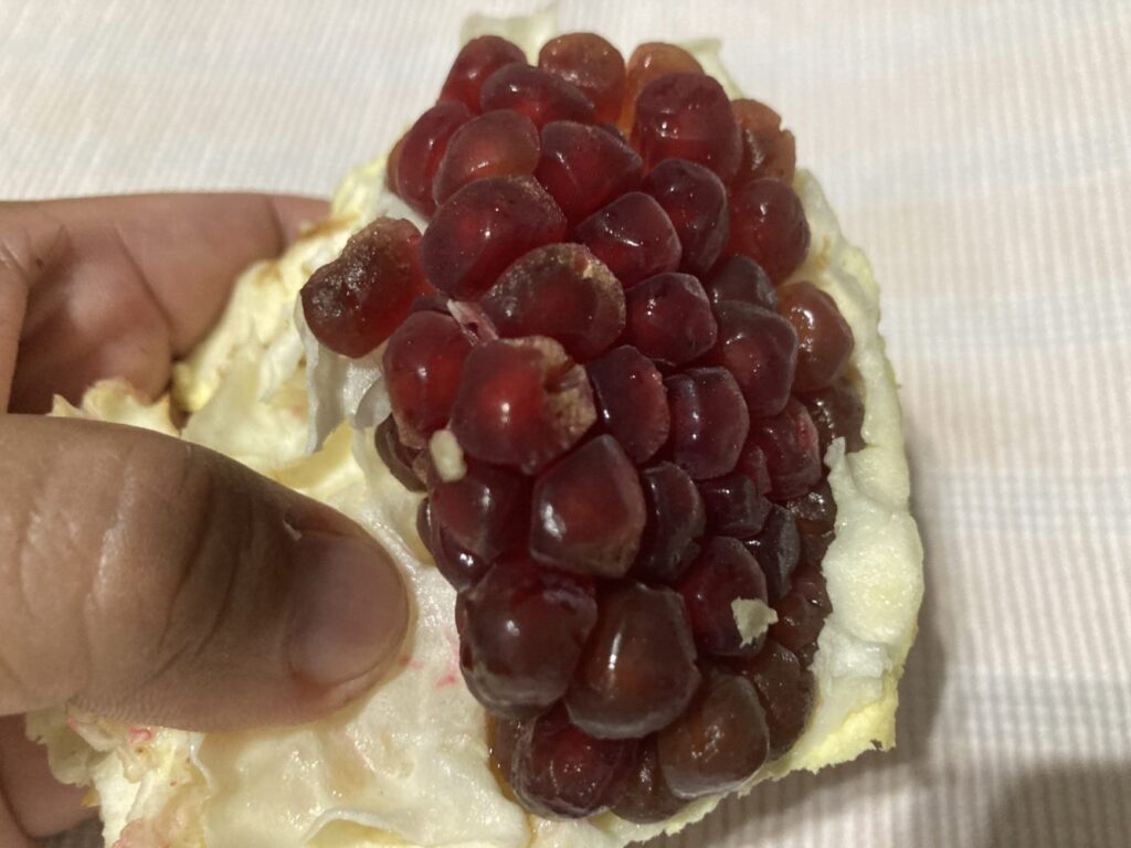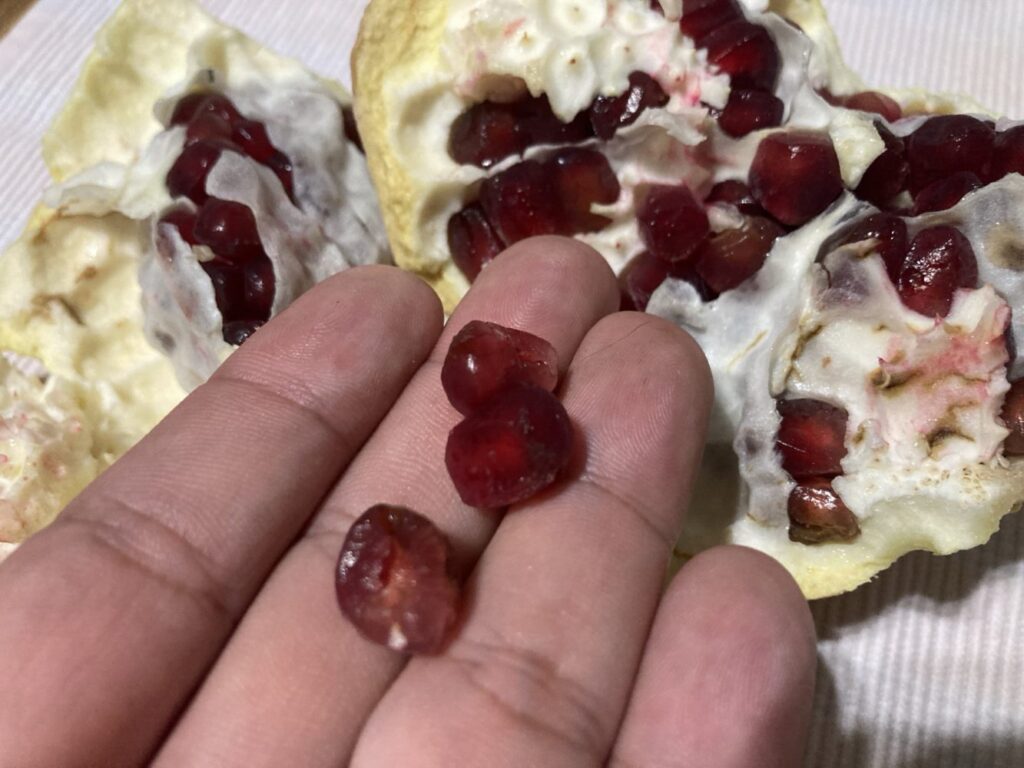 私が日本で食べたことのあるザクロの印象は「酸っぱい」の一言。しかも個体が小さくていまいち食べた感がないって感じでした。