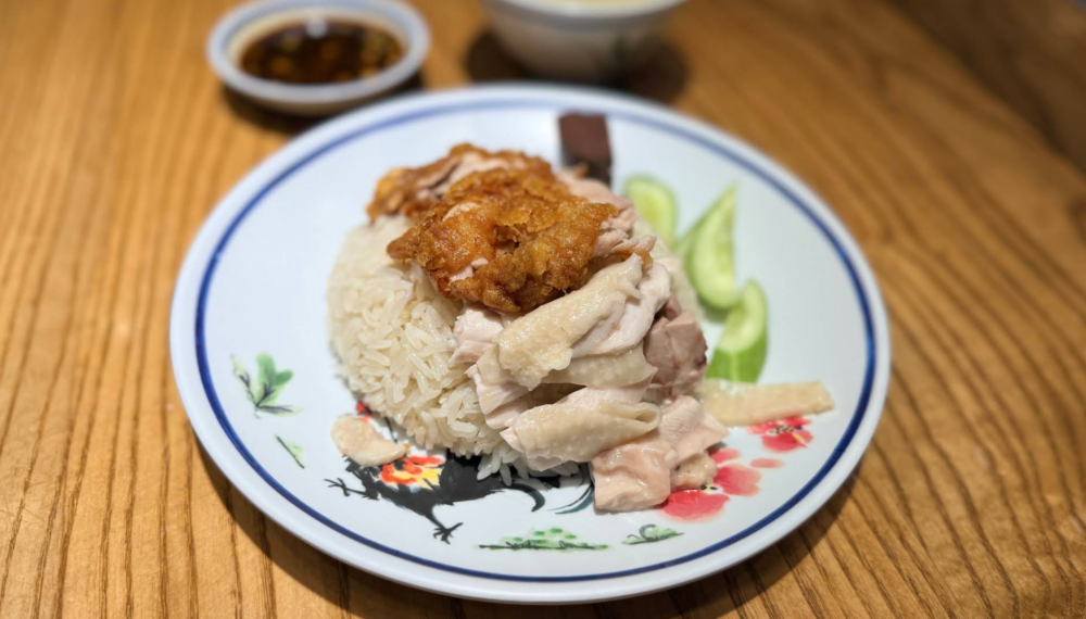 茹でた鶏肉を鶏出汁で炊いたご飯にのせ、特製タレとスープがついてくるシンプルながら奥深い一品。