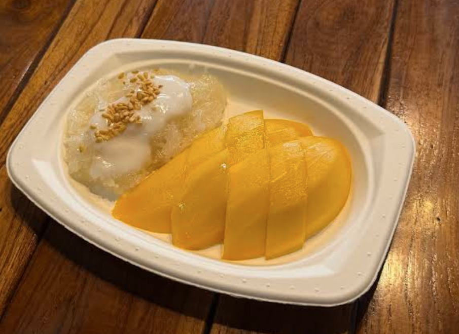 もち米にマンゴーをのせてココナッツミルクをかけたタイの国民的デザート。甘×しょっぱ×もちもちの不思議な組み合わせがクセになります!!
