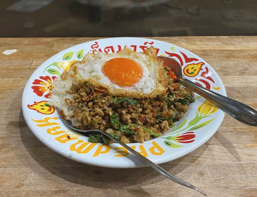 タイバジル炒めをご飯にのせて目玉焼きを添えたガパオライスは、タイ人が最もよく食べる国民食のひとつ。タイ語でちゃんと言うと「ข้าวผัดกะเพรา:カーオ・パット・ガパオ」と言います。