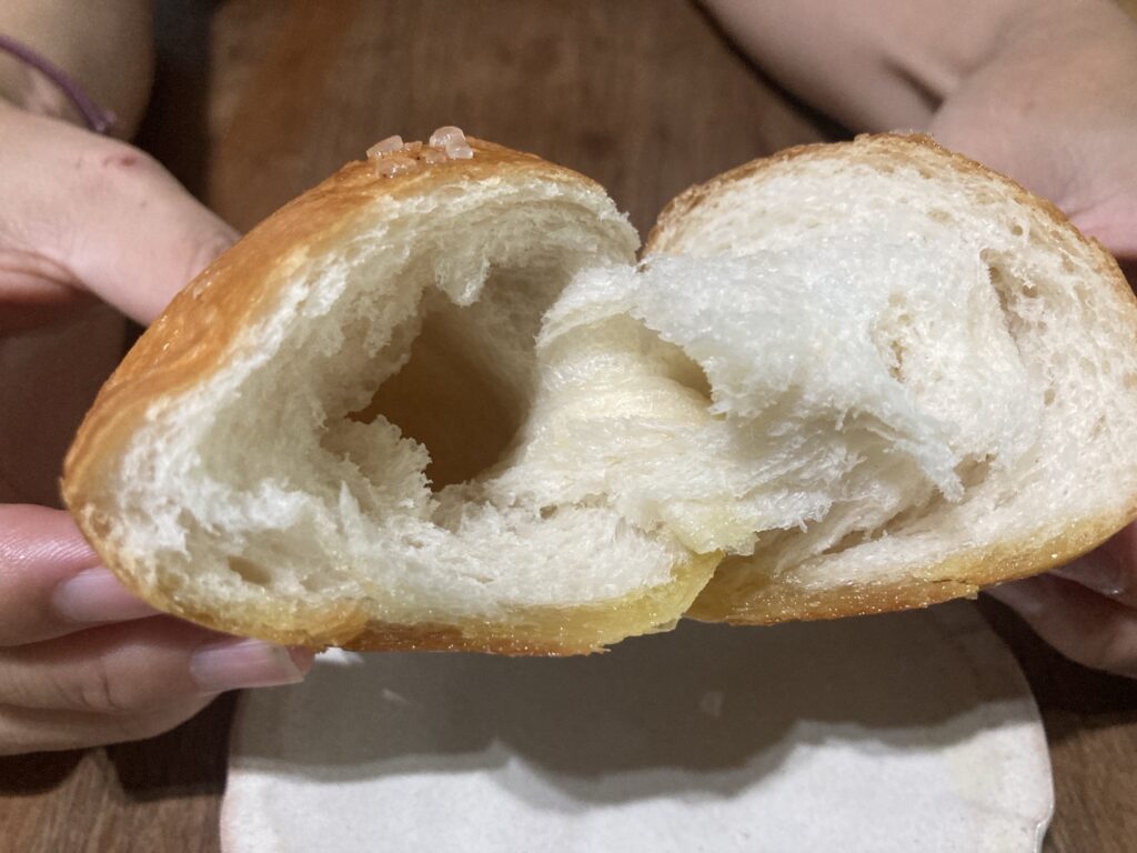 どうやら個体によって差があるよう。奥さんが食べたのはパンを割るとバターがあふれ出してきていて、二人で「うそぉー!!」「これこれぇ!」とはしゃぎましたが、私のシオパンはこちら。