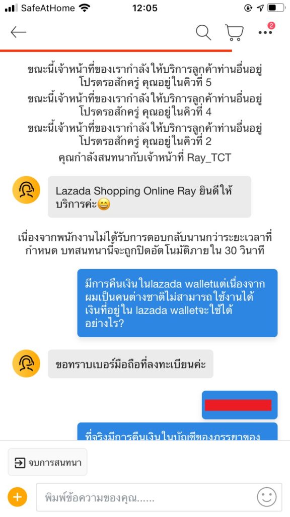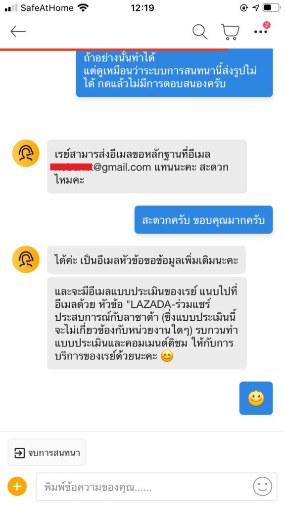 もちろんLazadaのアプリでもチャットでの対応ページがあります。「แชทกับลาซาด้า」というところから入れます。