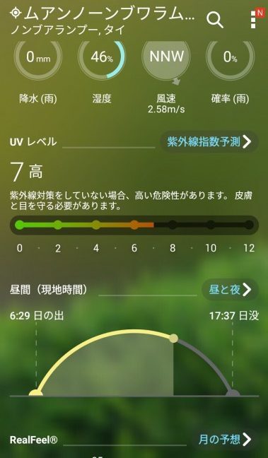 私の携帯電話にUV指数を表示するアプリが入っていましたのでバンコクの数値を見てみました。