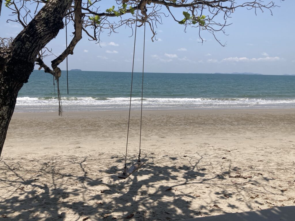 カフェから降りてすぐのビーチには大きな木にブランコがあって、そんでもってときどき子供や犬がビーチを走っていて…