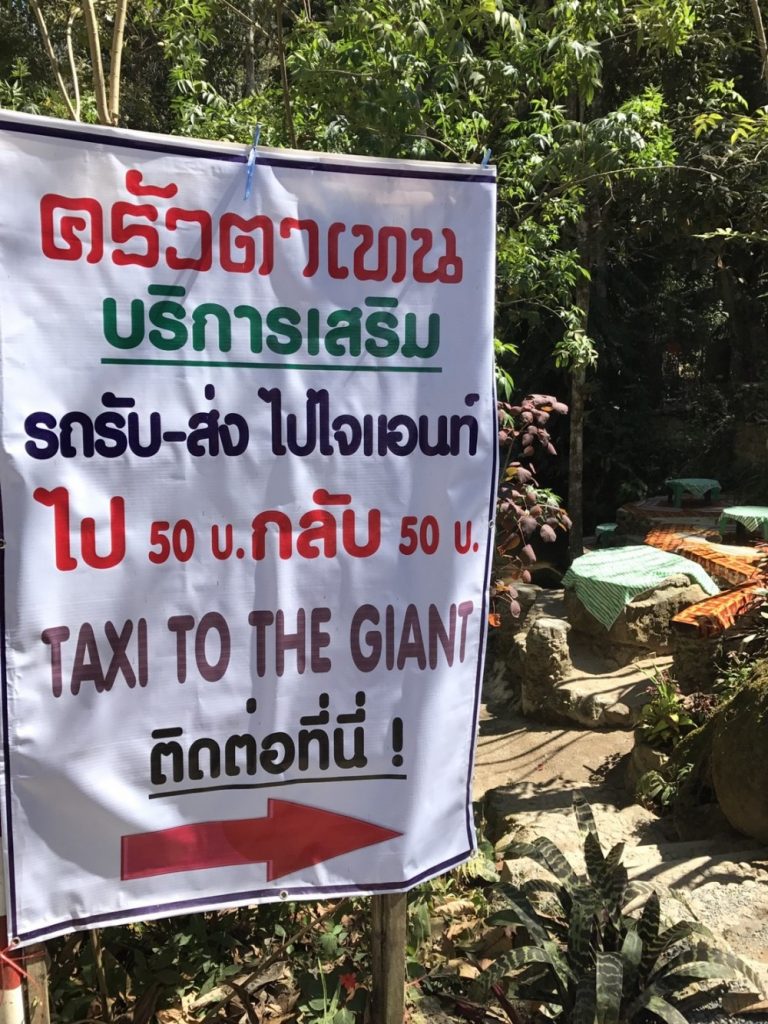 でもちょうどその山道に入る手前ぐらいにThe Giantカフェと提携した送迎車が何件も営業していますので行き返り一人100バーツで利用することもできます(下の写真参照)。