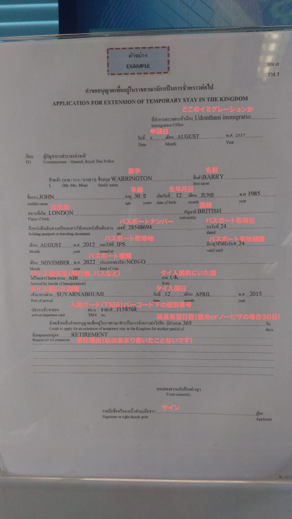 ちなみに観光ビザのシングルエントリーですと60日間で一人1000バーツですので、この「30日滞在延長」がどれだけ割高なのかが分かります。
